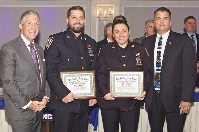 PBA President Pat Lynch & LI Shields Pres. Mike Villa present Police Officers Vogel & Scparta Cop of the Month Awards