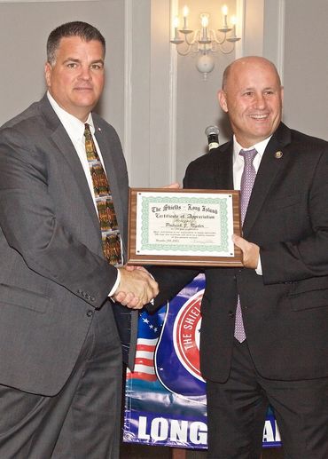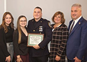 Police Officer Joseph Nugent receives award along side Lt. Marsella, Pct Platoon Commander... presented by LI Shield's President Mike Villa (Far Left) & Tresurrer Rick Rottkamp (Far right)
