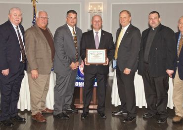 LI Shields Pres. Mike Villa present Lieutenant Gregg Magnifico, Police Officers Casimer Cegelski, Joseph Stassi, and Michael Schwaner with Police Officer of the Month Award alongside Nassua County Chief Neil Delargy